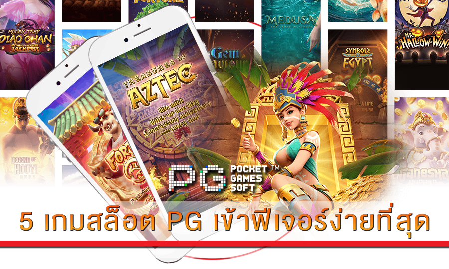 เกมสล็อตออนไลน์จาก PG SLOT ที่เราได้แนะนำ อาทิเช่น Treasures of Aztec, Fortune Ox, Fortune Gods, Hood vs Wolf และ Buffalo Win เป็น 5 เกมสล็อต PG เข้าฟีเจอร์ง่ายที่สุด โดย เป็นเกมที่มีโอกาสเข้าถึงฟีเจอร์ง่าย และแน่นอนว่ายิ่งคุณเข้าถึงฟีเจอร์เกมเหล่านี้ได้ง่ายแค่ไหน โอกาสที่คุณจะได้รับเงินก้อนโตนั้นจะยิ่งไวขึ้นเท่านั้น ดังนั้น นี้เป็นทางเลือกแนะนำที่อาจจะทำให้คุณประสบความสำเร็จก็เป็นได้.